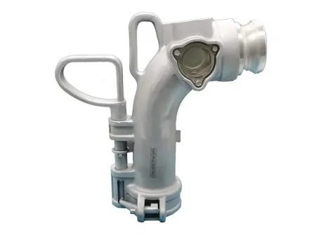 O cotovelo de descarga é um componente de conexão montado em caminhões-tanque de petróleo para permitir a descarga segura e eficiente do combustível em tanques de armazenamento subterrâneos. Ele conecta a saída de descarga do caminhão-tanque ao adaptador do lado da estação no posto de serviço ou depósito.